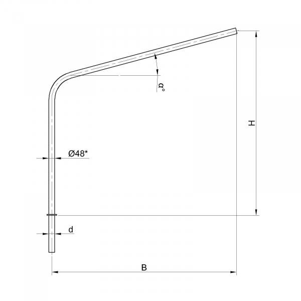 Однорожковые кронштейны К2-1,5-1,0-1-1 предназначен для крепления светильника на трубчатой опоре освещения. Завод опор освещения «Альдекс» изготавливает однорожковые консольные кронштейны из стального проката. Собственное производство позволяет выполнять изделия надлежащего качества и в кратчайшие сроки. Конструкция однорожковых кронштейнов К2-1,5-1,0-1-1. Конструкция консольных однорожковых кронштейнов К2-1,5-1,0-1-1 представляет собой гнутую металлическую трубу заданных размеров.